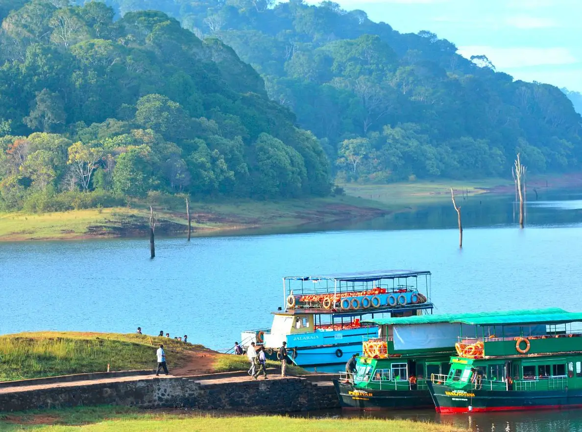 Sightseeing in Thekkady. Periyar Lake, Where you can sight elephants, Deer Indian Bision. Kalari Show Oldest form of Martial Art in India.